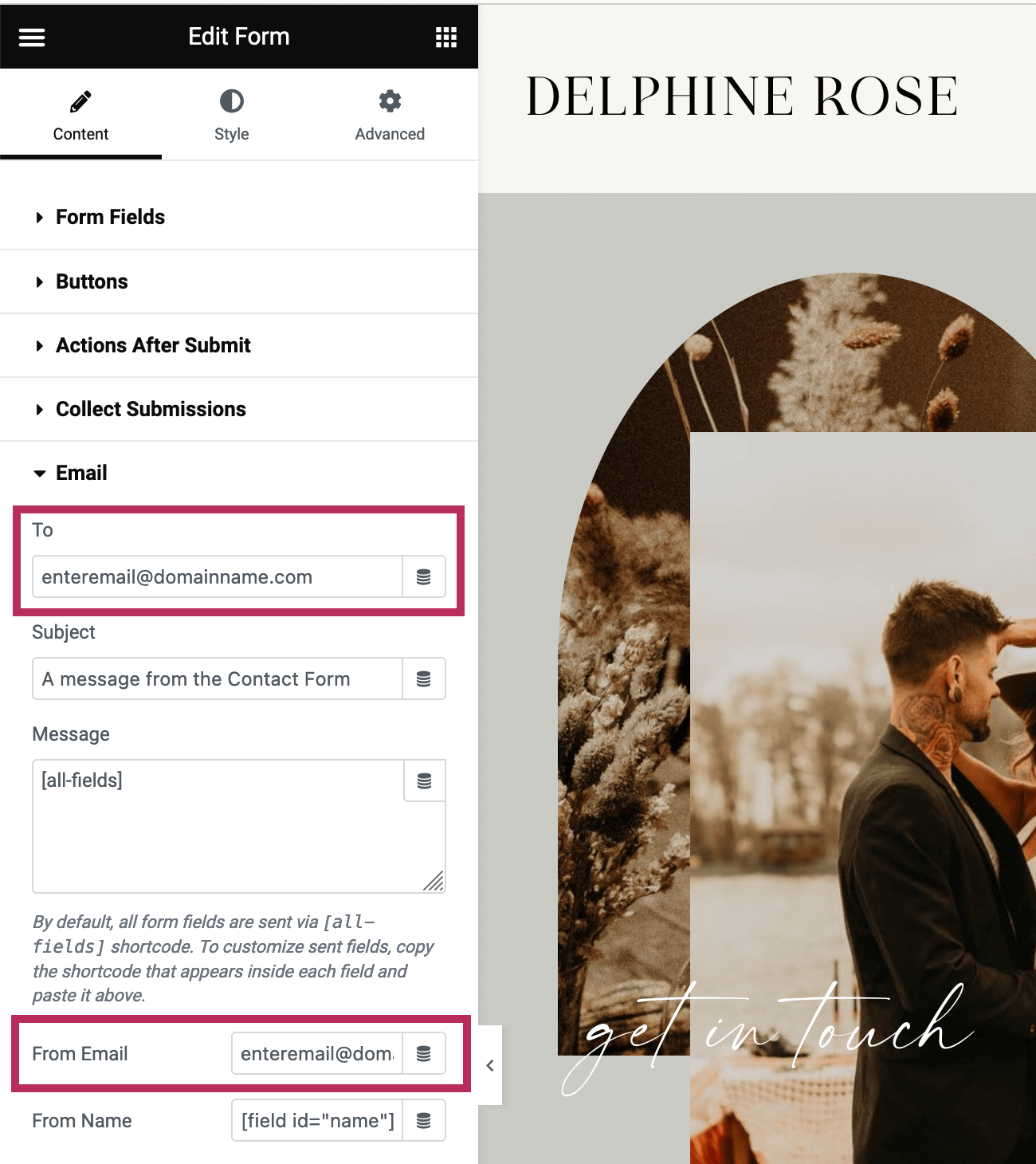 Per the Elementor docs, it is strongly recommended that you use an email address with your domain name. For example, using [email protected] instead of [email protected].If you visit the Style tab of the Contact Form settings, you can customize the style of the form including the form fields, submit button, and after-submit messages displayed to the user.