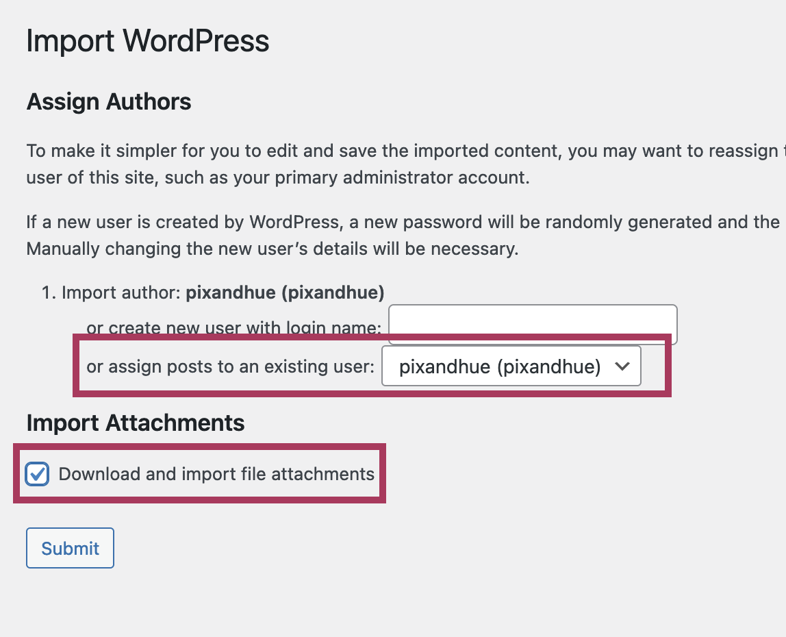 On the next screen, you can choose to assign the imported demo content to an existing user on your website.