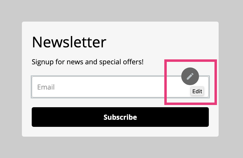 Use the MailerLite form builder to add fields and customize the text of your subscription form. First, you can click on the pencil icon to add a "Name" field to your form.