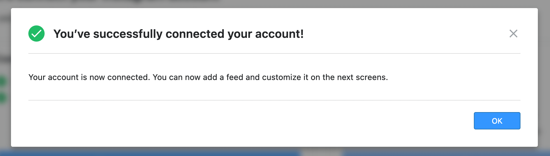 Once you have given the necessary permission, the plugin will display a success message that your Instagram account is now connected to WordPress. An example of the success message is shown below.