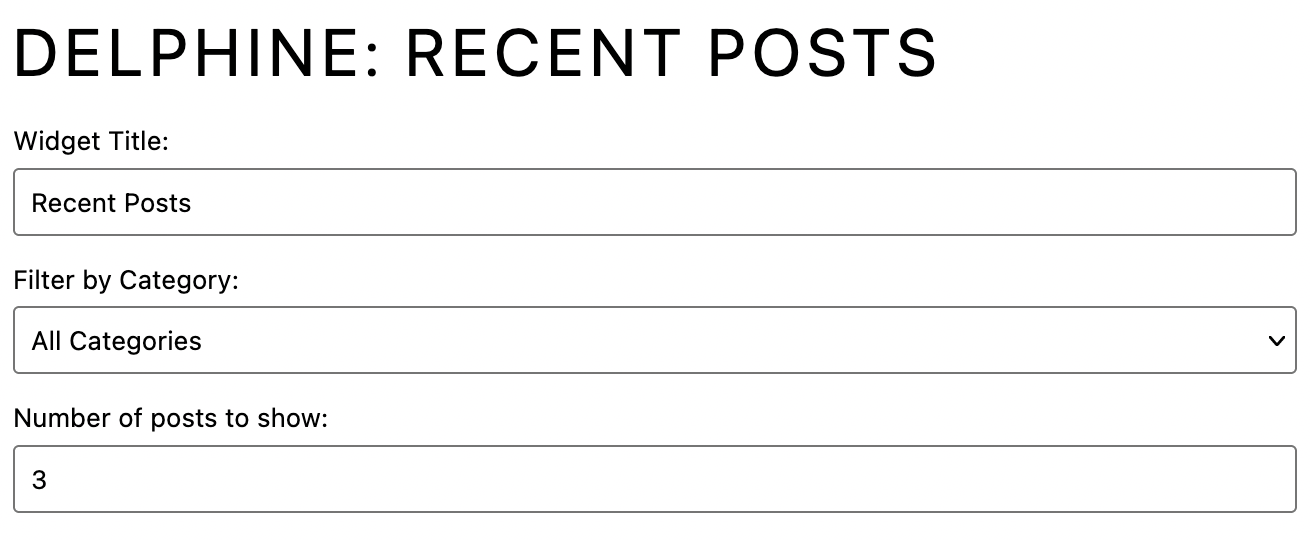 Displays the image, title, and date of recent posts published to your website. You can select to include all categories or a specific category. You can choose the number of posts to display within the widget. The image below shows the settings used in the theme demo.