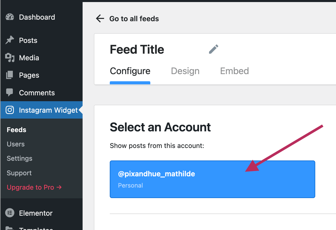 On the next screen, click on the Instagram account you wish to use on your website.
