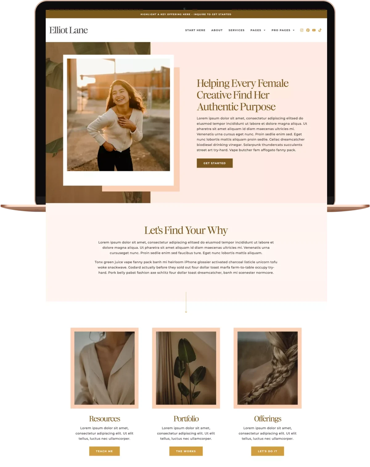 The Elliot WordPress theme is a feminine and bright theme that is perfect for female service providers and creators. This theme is great for someone who loves color, wants to showcase more text, and tell her unique story.